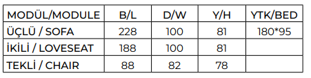 • Pati dostu kumaş veya sıvı geçirmeyen kumaşlar mevcuttur